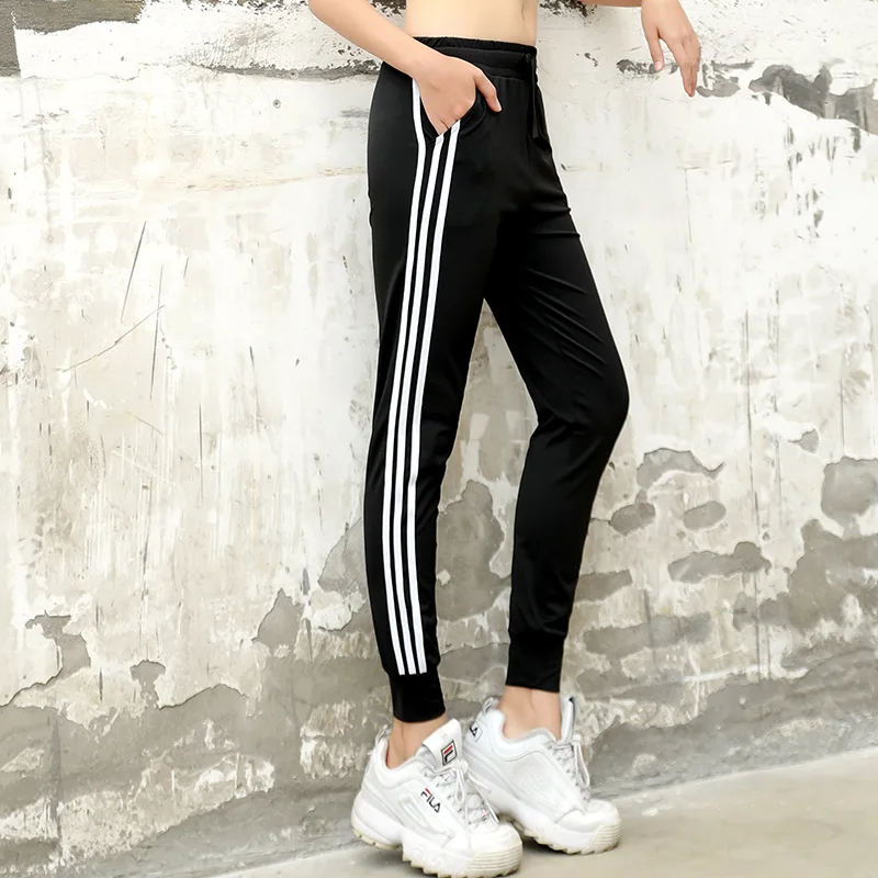lady pants loose elastic fitness pants popular style quick-dry lady running three bars of foot trou