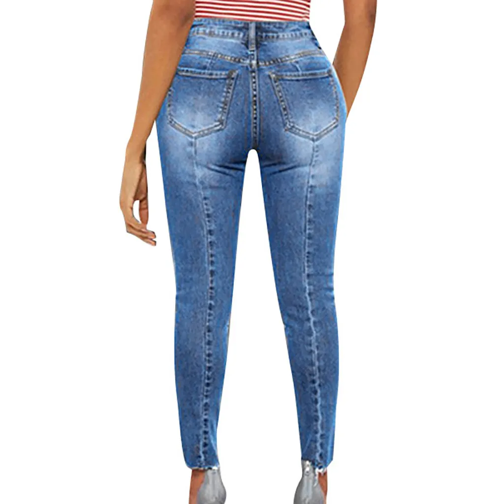 Elegant Women Beading Jeans Slim Sexy Denim Pencil Pants Fashion Office Lady Casual High Waist Long